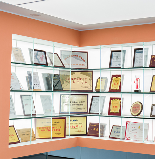 Tá na teidil oinigh seo a leanas ag an gcuideachta: Fiontair Bheaga agus Mheánmhéide Eolaíochta agus Teicneolaíochta Chúige Zhejiang, Fiontair Scamall Chúige Zhejiang, Stáisiún Oibre Iardhochtúireachta Chúige Zhejiang, Fiontair "Speisialaithe agus Nua" Chathair Ningbo, Ionad Teicneolaíochta Innealtóireachta Chathair Ningbo, Fiontair Liostaithe Ionad Malartaithe Cothromais Chathair Ningbo, Monarcha Glas Chathair Cixi, agus 50 Aschur is Fearr in aghaidh an acra Chathair Cixi. Tá 123 paitinn de chineálacha éagsúla aici, is aonad ball de Choiste Caighdeánaithe Fearas Soilsithe na Síne í, glacann sí páirt i 2 chaighdeán náisiúnta agus 7 gcaighdeán grúpa, tá saotharlanna finnéithe TUV agus SGS aici, agus tá ionad taighde agus forbartha comhpháirteach bunaithe aici do tháirgí soilsithe cliste agus bonn intéirneachta "tionscal-ollscoile-taighde" le hOllscoil Teicneolaíochta Feidhmí Shanghai.